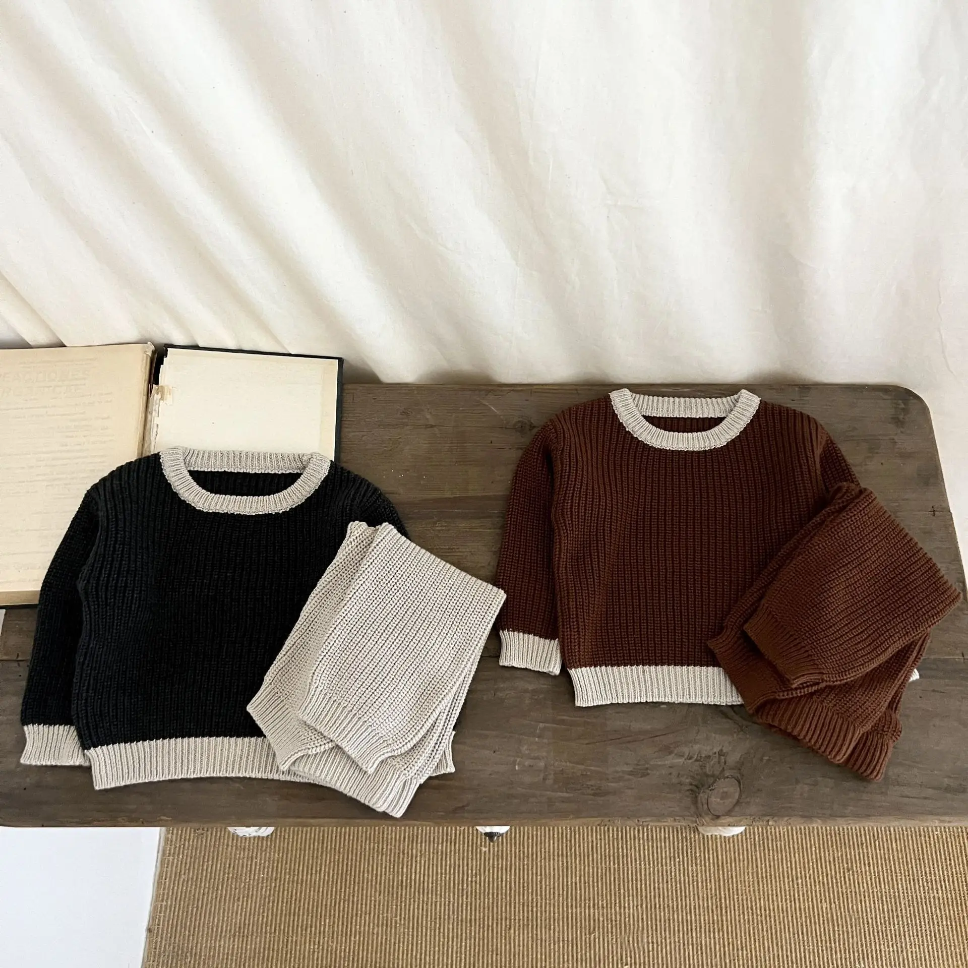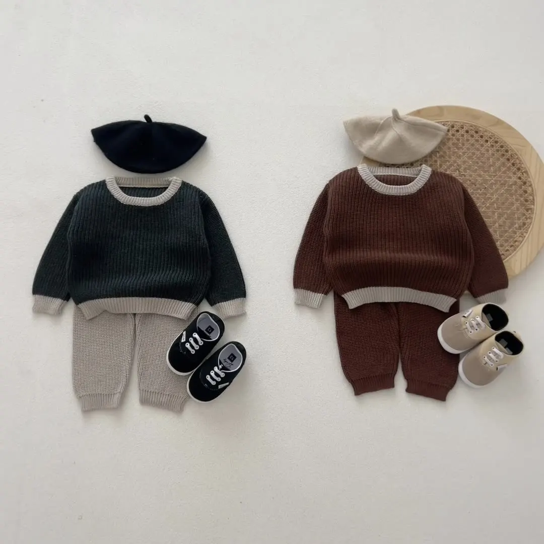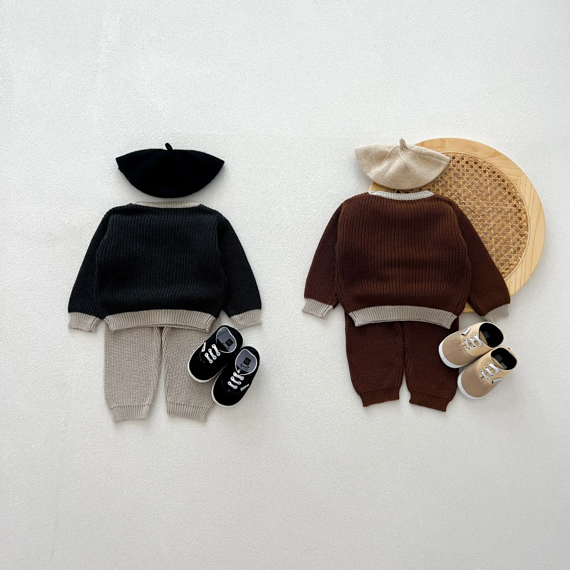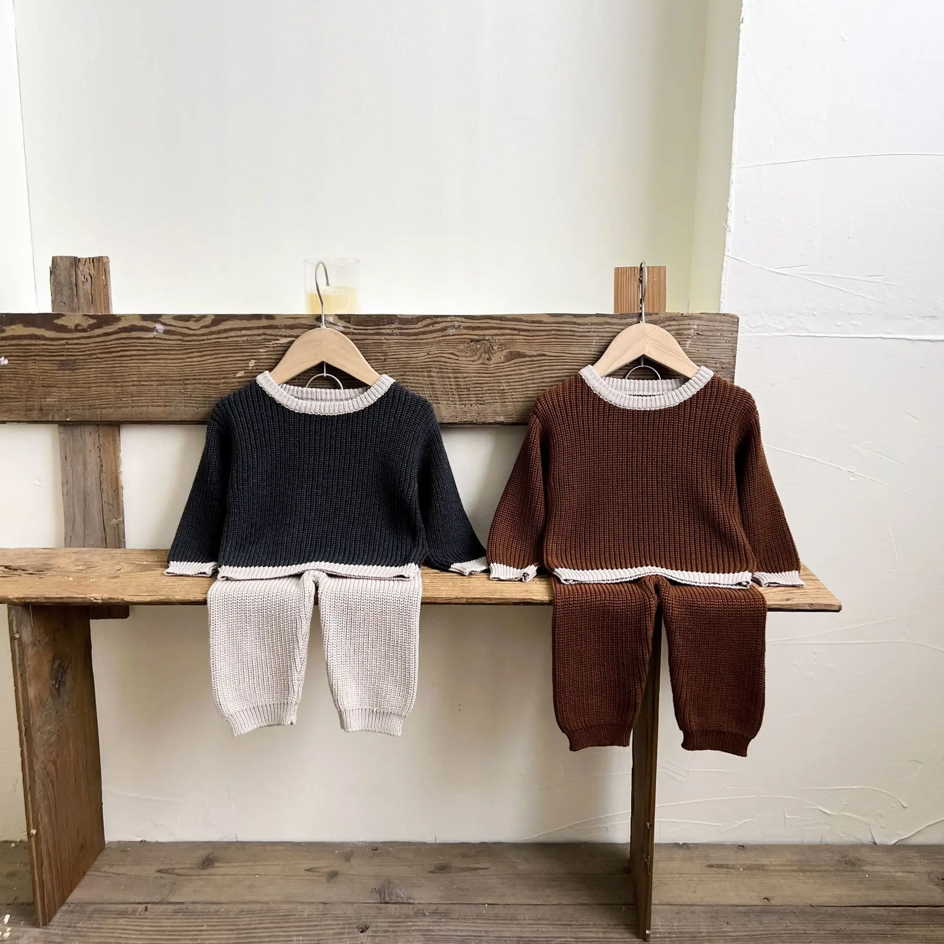 Custom Logo Autumn Newborn Baby Boy Knit Sweater Pullover Jumper Infant Knitted Sweater Pants Kids Girl Set